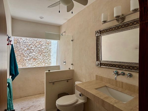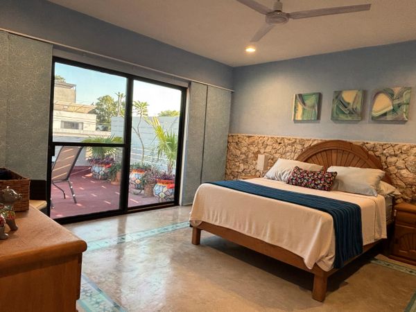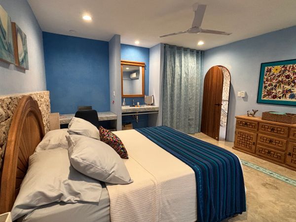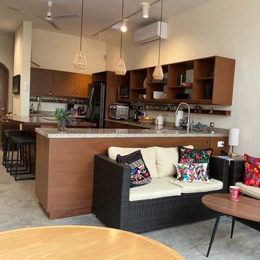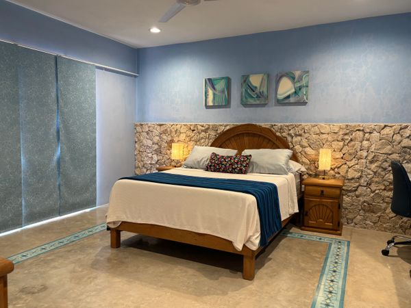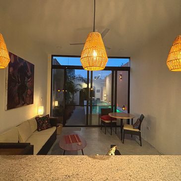 Sliding glass walls & screens allow views of the Mexican sky and let the Yucatán breeze flow through. When the heat kicks up, ceiling fans & solar-powered AC keep will you comfortable and cool thruout the house.